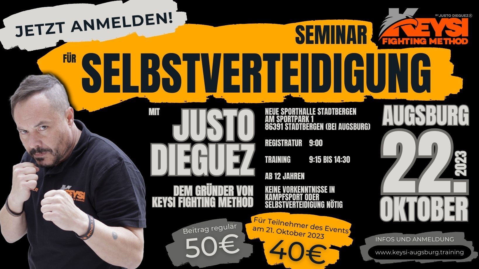 Als besonderes Highlight in 2023 kommt Justo Dieguez - der Gründer von Keysi Fighting Method - für ein Doppel-Event am 21. und 22. Oktober nach Stadtbergen/Augsburg!